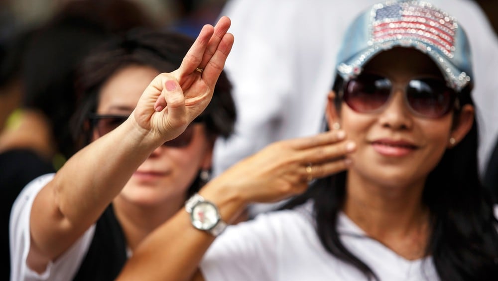 Militærregimet har forbudt folk å gjøre tegnet med tre fingre foran munnen, og flere er blitt arrestert for å gjøre det.
